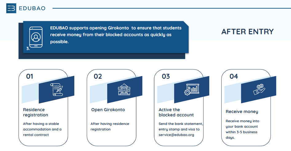🔎 Tuy nhiên, xin lưu ý: tài khoản này không dùng để thực hiện các giao dịch thông thường như thanh toán tiền thuê nhà hay mua thực phẩm. Để thực hiện những giao dịch này, bạn sẽ phải mở một tài khoản ngân hàng tại Đức sau khi đến nơi.